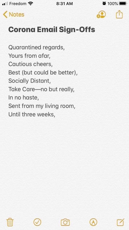 Unique ways to sign off in emails related to social distancing as a result of the pandemic