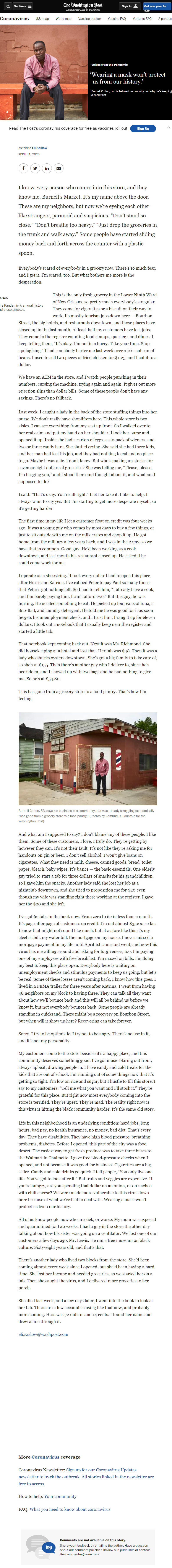 Burnell Cotlon, owner of a small grocery store in New Orleans' Lower Ninth Ward, shares how COVID-19 is effecting his community.