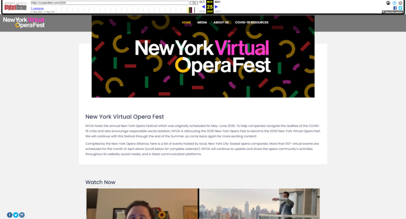 New York Virtual Opera Fest NYOA hosts the annual New York Opera Festival which was originally scheduled for May-June 2020. To help companies navigate the realities of the COVID-19 crisis and also encourage responsible social isolation, NYOA is refocusing the 2020 New York Opera Fest to become the 2020 New York Virtual Opera Fest.