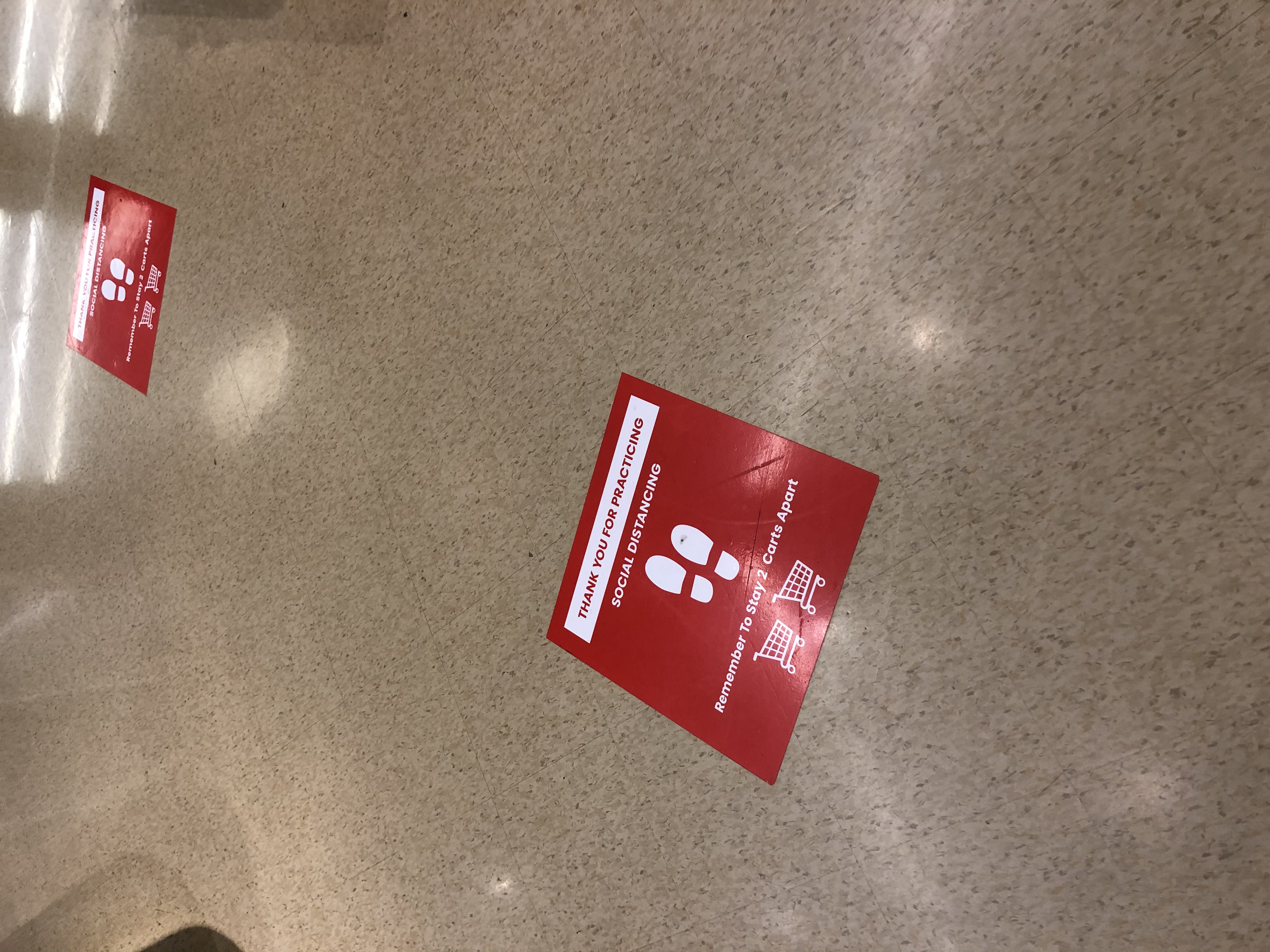 Stickers on floor of Safeway