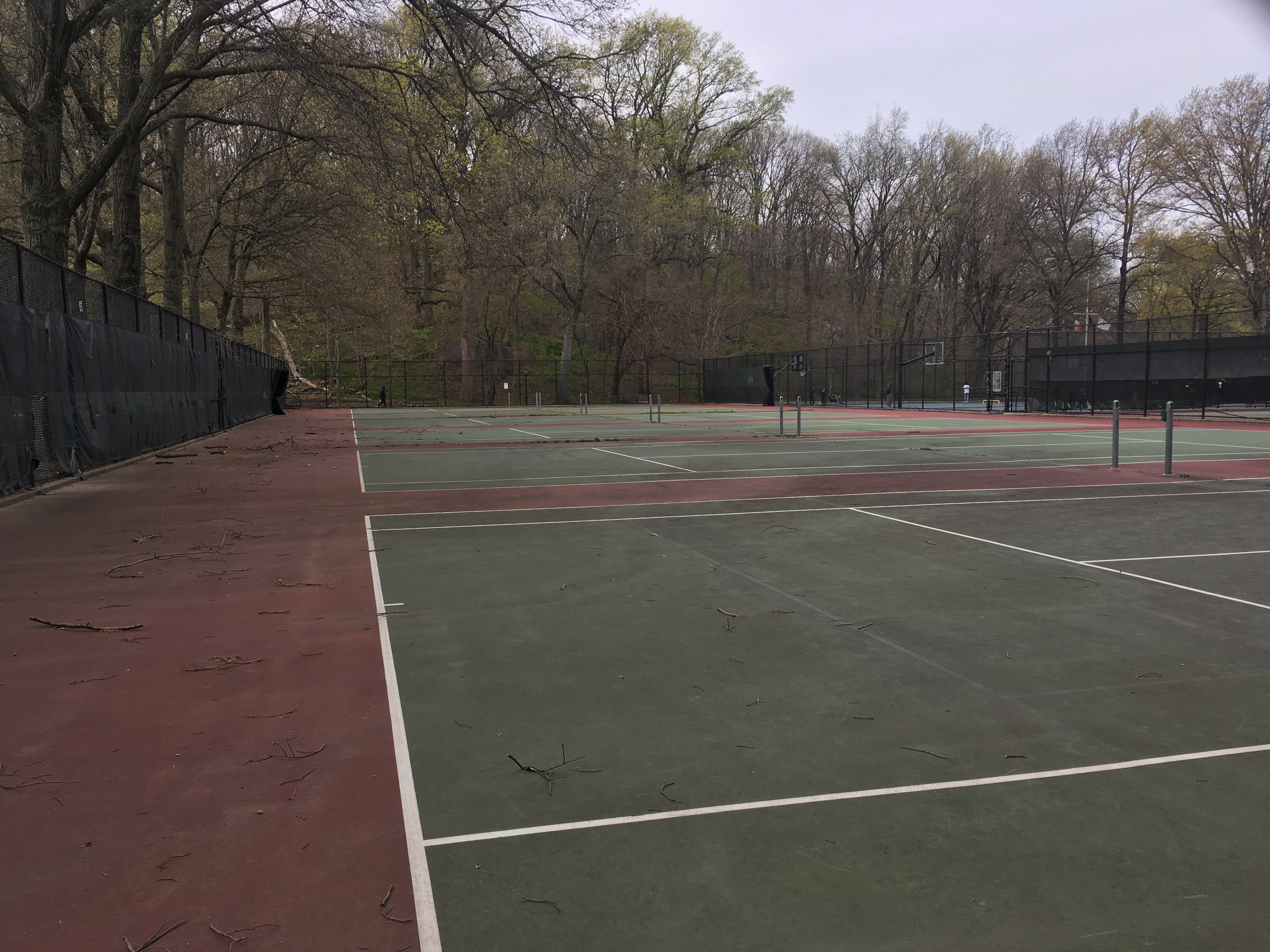 Even the tennis courts are empty, where players would be forced to maintain distance anyway in order to play. There are always people here, usually.