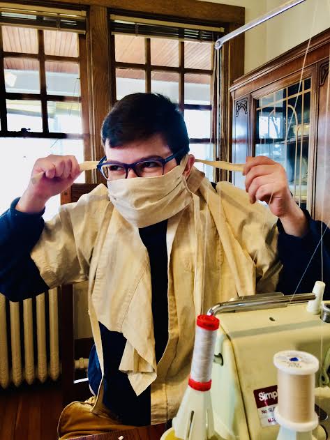 Days before Minnesota's official shelter in place, people's homes began to transform into small factories. Turning out masks by the dozens, and sometimes even hundreds, Minnesotans answered the call for the protective headwear. Isolation did not stop people from joining together in common cause. Local businesses gave away materials, and local hospitals created drive-by drop offs for people to donate masks. Once we ran out of fabric, my mother turned to old clothes to meet the demands. Pictured above, I am modeling on of the first masks she made. We donated to family members, friends, neighbors, and also to a local hospital. We also shipped some to my brother's coworkers at the Pueblo, Colorado Health Department. In total, my mom has made around 100 masks, showing that not all heroes wear capes, but they do wear masks. #DePaulHST391
