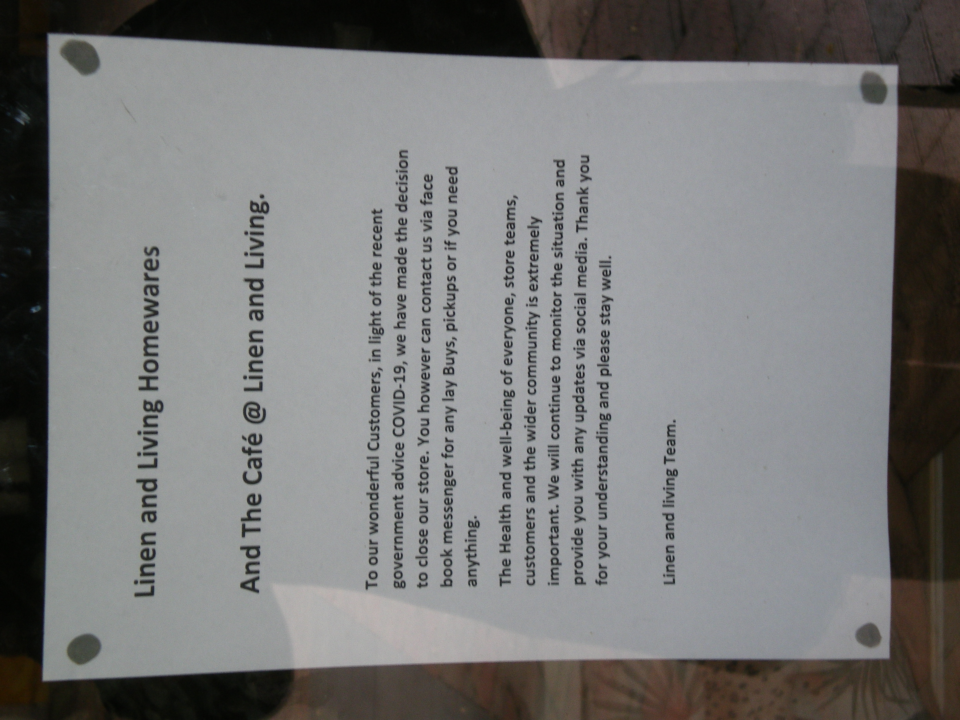 Image of notice on closed business