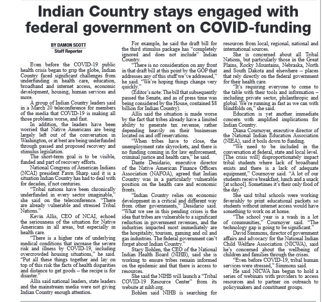 "Even before the COVID-19 public health crisis began to grip the globe, Indian Country faced significant challenges from underfunding in health care, education, broadband and internet access, economic development, housing, human services and more." As a result, tribal leaders held a March 20 teleconference to discuss their next move. #IndigenousStories