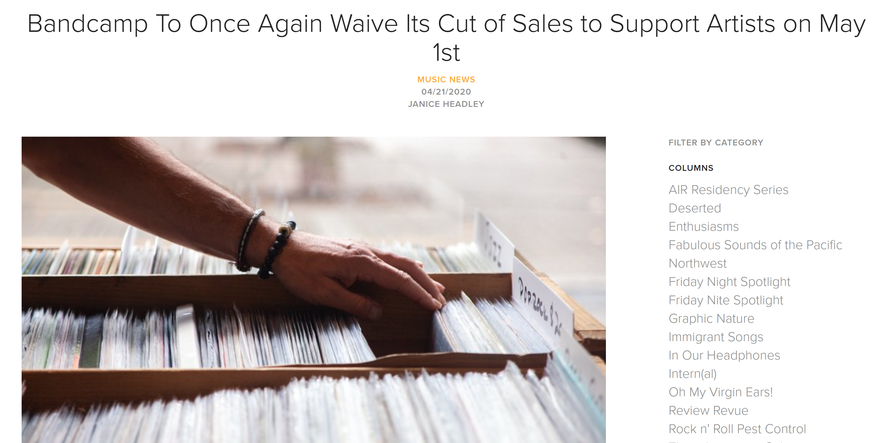 Bandcamp To Once Again Waive Its Cut of Sales to Support Artists on May 1st