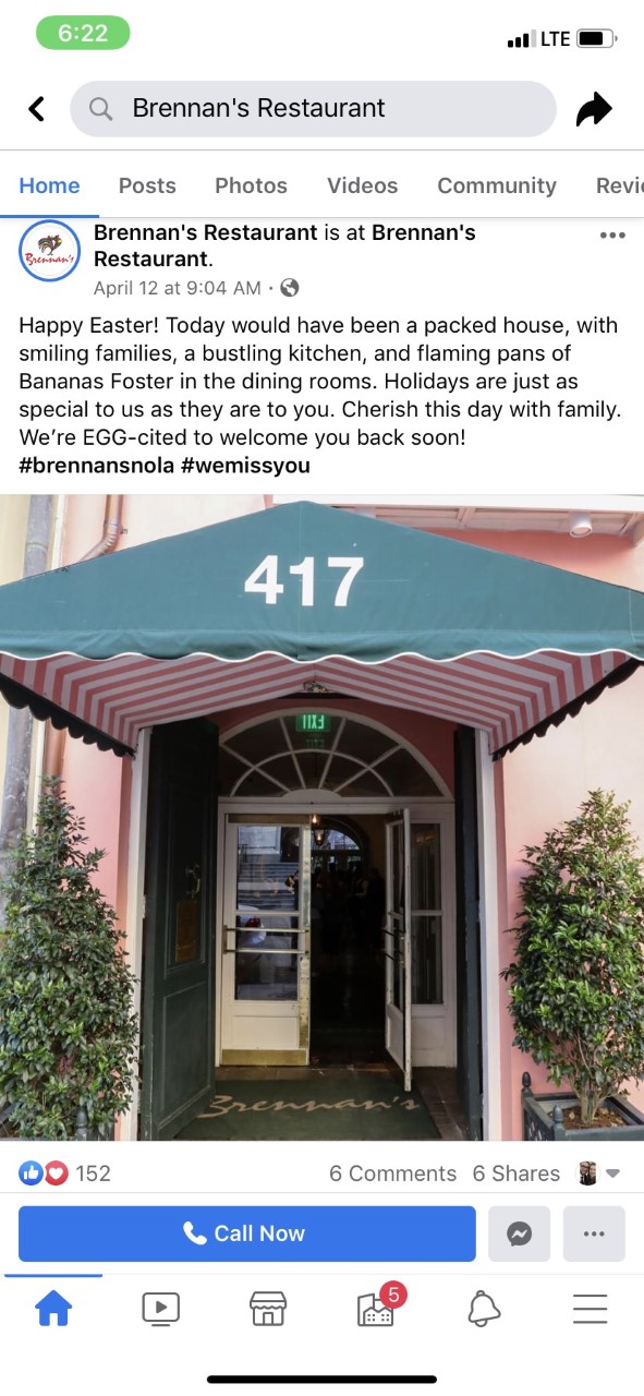 Brennan's Restaurant wishes patrons a Happy Easter and promotes cherishes quality time with family.