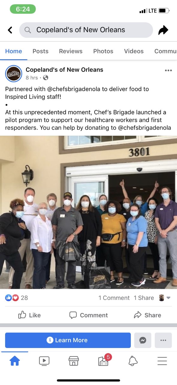 At this unprecedented moment, Chef’s Brigade launched a pilot program to support our healthcare workers and first responders. You can help by donating to @chefsbrigadenola."