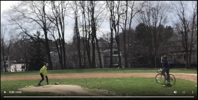 Hitting Softball from a Social Distance Pitch while Riding a Bike.