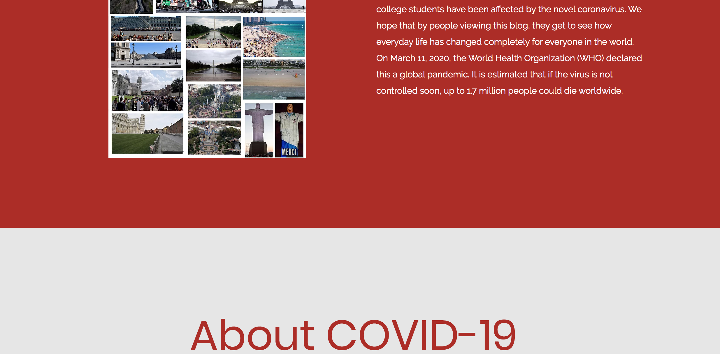 We were assigned a digital archive project for our final assignment in history class. We recently finished and inside our website, you can see daily vlogs, screenshots of news and media sources, and pictures from our towns.