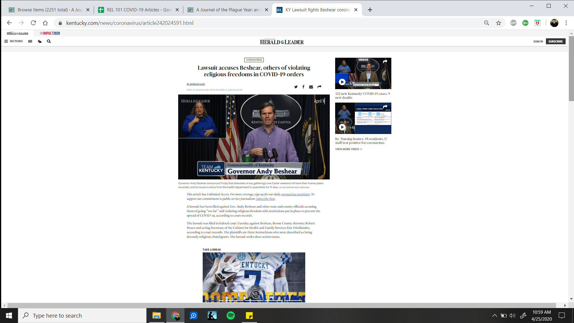 This article explains how three Kentucky citizens are accusing Governor Andy Beshear and other government officials of violating their religious freedom. The three plaintiffs attended Easter church and were issued quarantine notices on their cars that instructed them to quarantine themselves at home for at least 14 days. They claim that because they practiced social distancing at the church, they have no need to quarantine themselves and are refusing to do so. They are filing a class action lawsuit to fight this order and to ensure their religious freedom in the future.