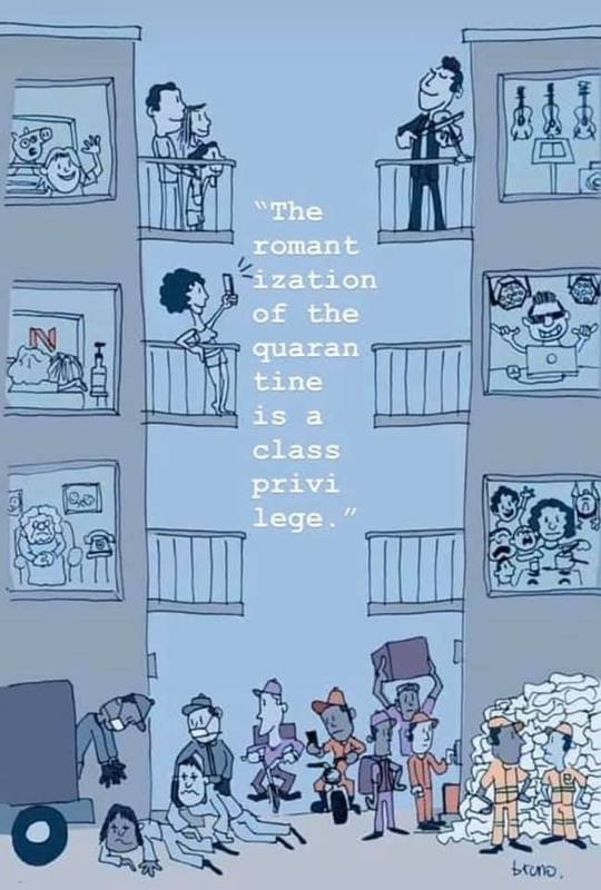 "The romanticization of the quarantine is a class privilege" Social Media Post