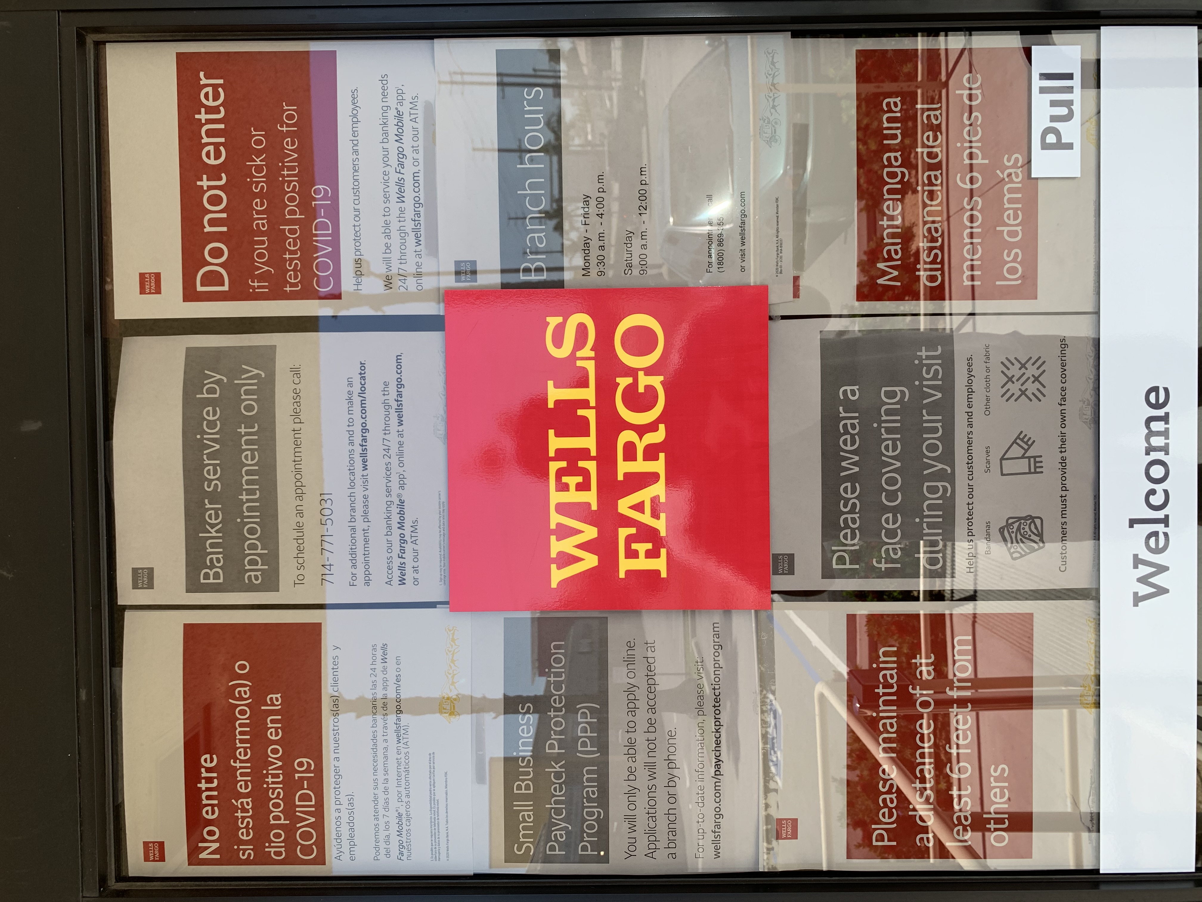 Since the quarantine was declared in California, the local branch of Wells Fargo that I use has been filling up their windows with more signs and announcements. With each new development or health recommendation, a new sign went up. It has reached the point where you cannot look through the doors anymore because of the number of postings.