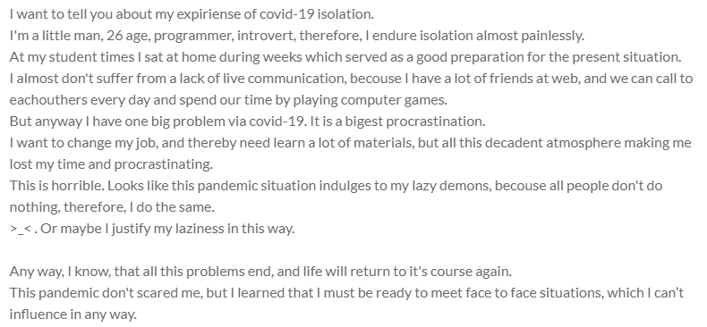 But anyway I have one big problem via covid-19. It is a bigest procrastination.