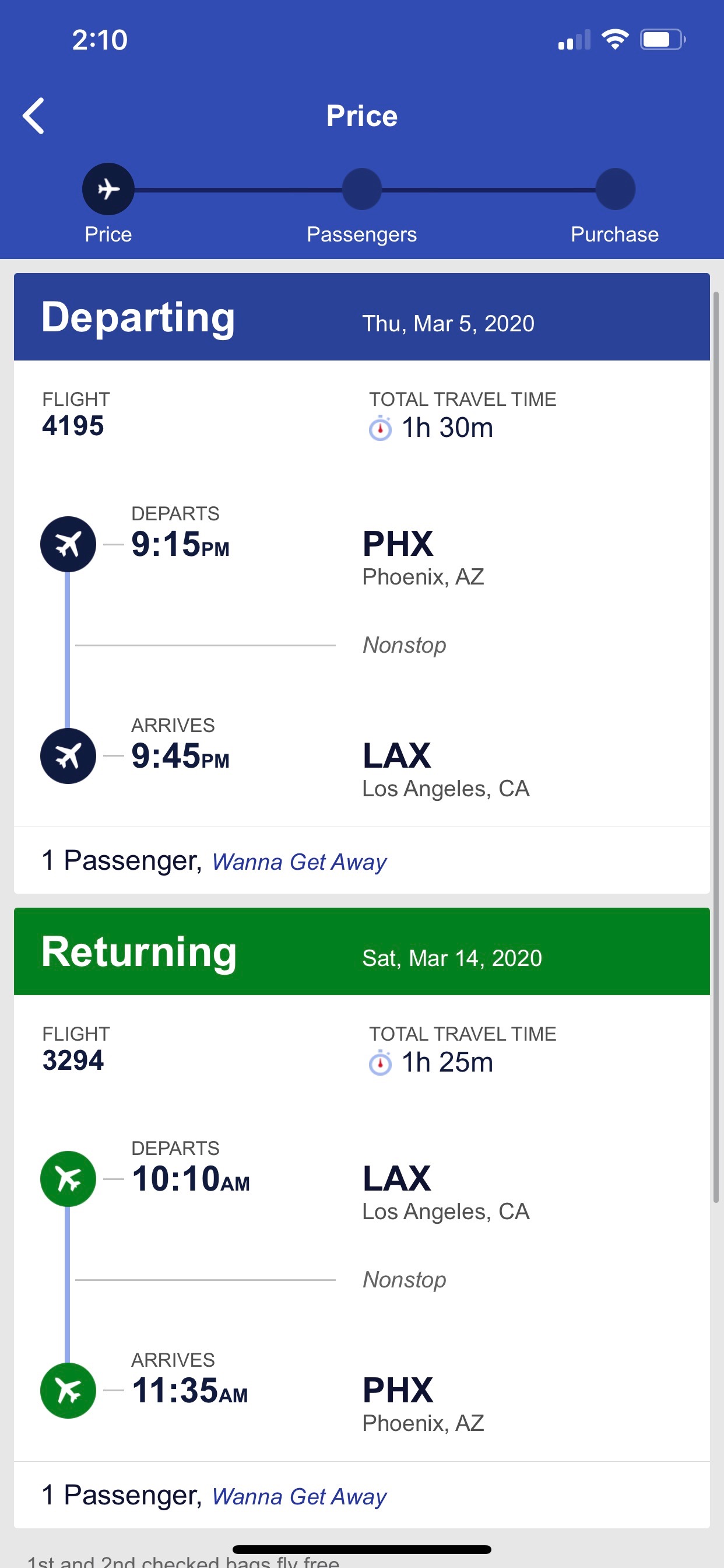 This is a screenshot of my plane itinerary from ASU Spring Break