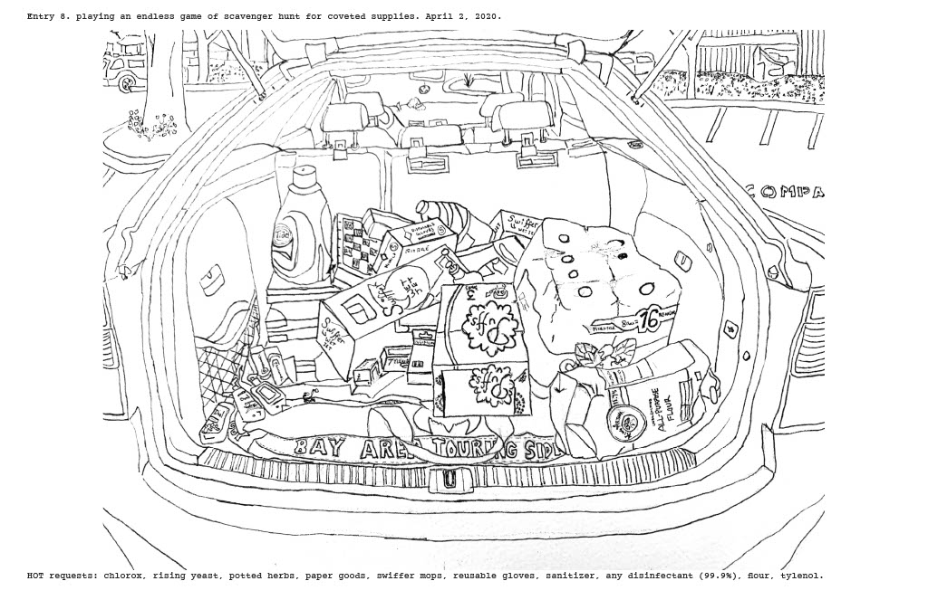 My experiences of this pandemic Entry 8. playing an endless game of scavenger hunt for coveted supplies. April 2, 2020.HOT requests: chlorox, rising yeast, potted herbs, paper goods, swiffer mops, reusable gloves, sanitizer, any disinfectant (99.9%), flour, tylenol.