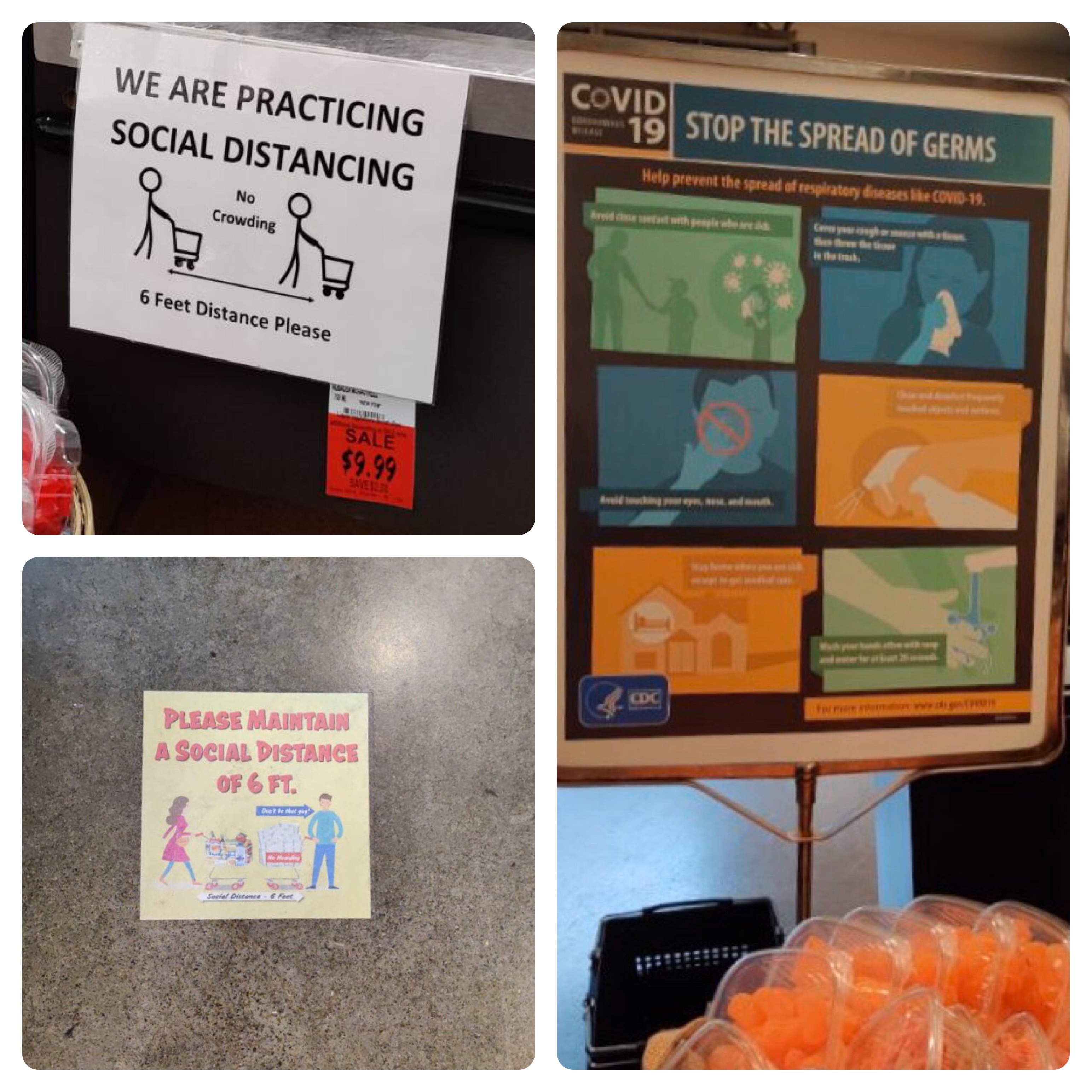 This image documents some of the signs that are being used in public to inform the community about the precautions that we all need to take during the pandemic.