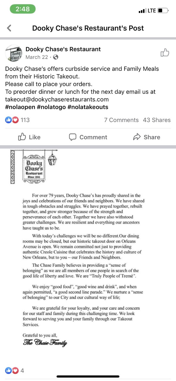 Dooky Chase Restaurant Promotes Curbside Service, New Orleans, LA |