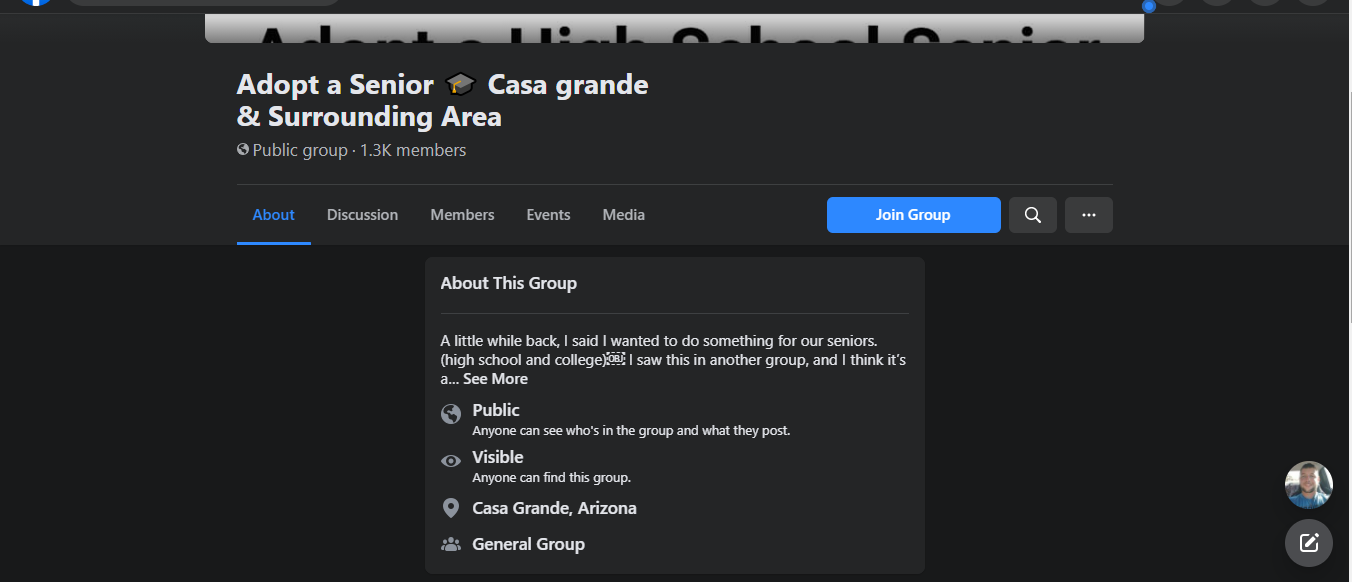 In order to encourage high school senior from my hometown, a page was made in which people could post their child that's a senior and people within the community can "adopt" them and then sponsor them, specifically by sending them baskets or gifts catered to what they like.
