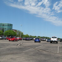 A photo of a building and a full parking lot.A Packed Gym Parking Lot Linked Data Image