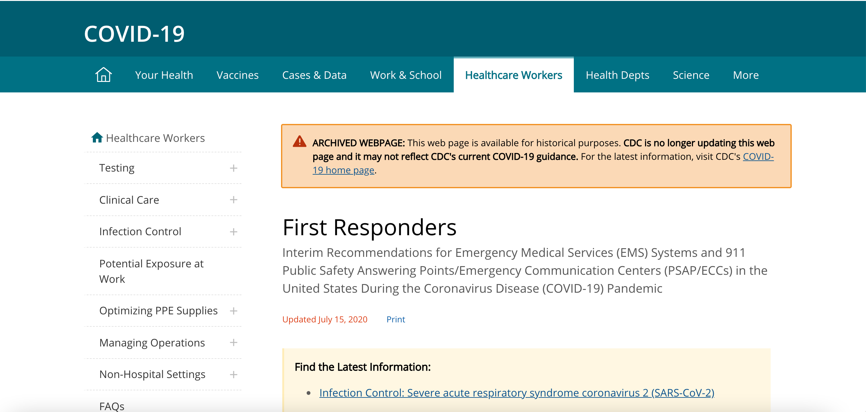 The article describes what first respondents should do in the case of an infected case. This article personally communicates to me that if I would get symptoms of COVID-19, I would know who to go to for help. #HIST15H
