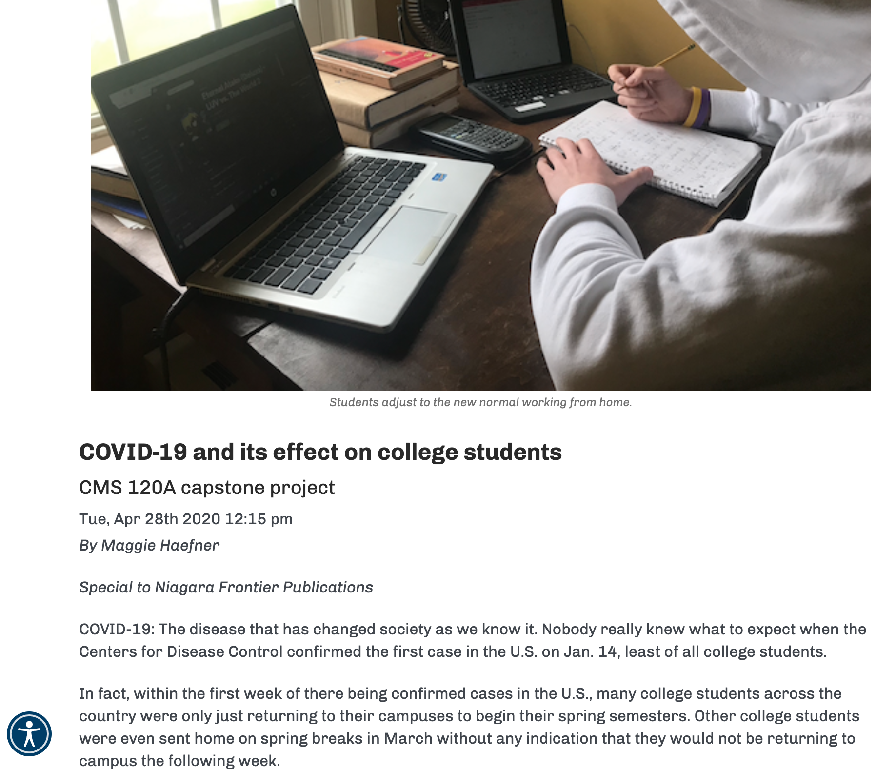 This is an article on the Niagara Frontier Publications website discussing the impact that the COVID-19 pandemic has had on college students. This article discusses many of the struggles that college students are facing. This article is significant to me because it lists many of the struggles that I am facing as a college student. One of the challenges I am facing is the uncertainty of everything, and not knowing whether my education may be affected in the future. It is difficult to enroll in classes for the next semester without knowing whether they will be online or on campus. #CSUS #HIST15H