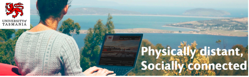 The slogan on this image reflects the nature of studying in isolation during COVID-19. The image features on UTas student communication emails that provide information on the university's response to the pandemic. - HUM402