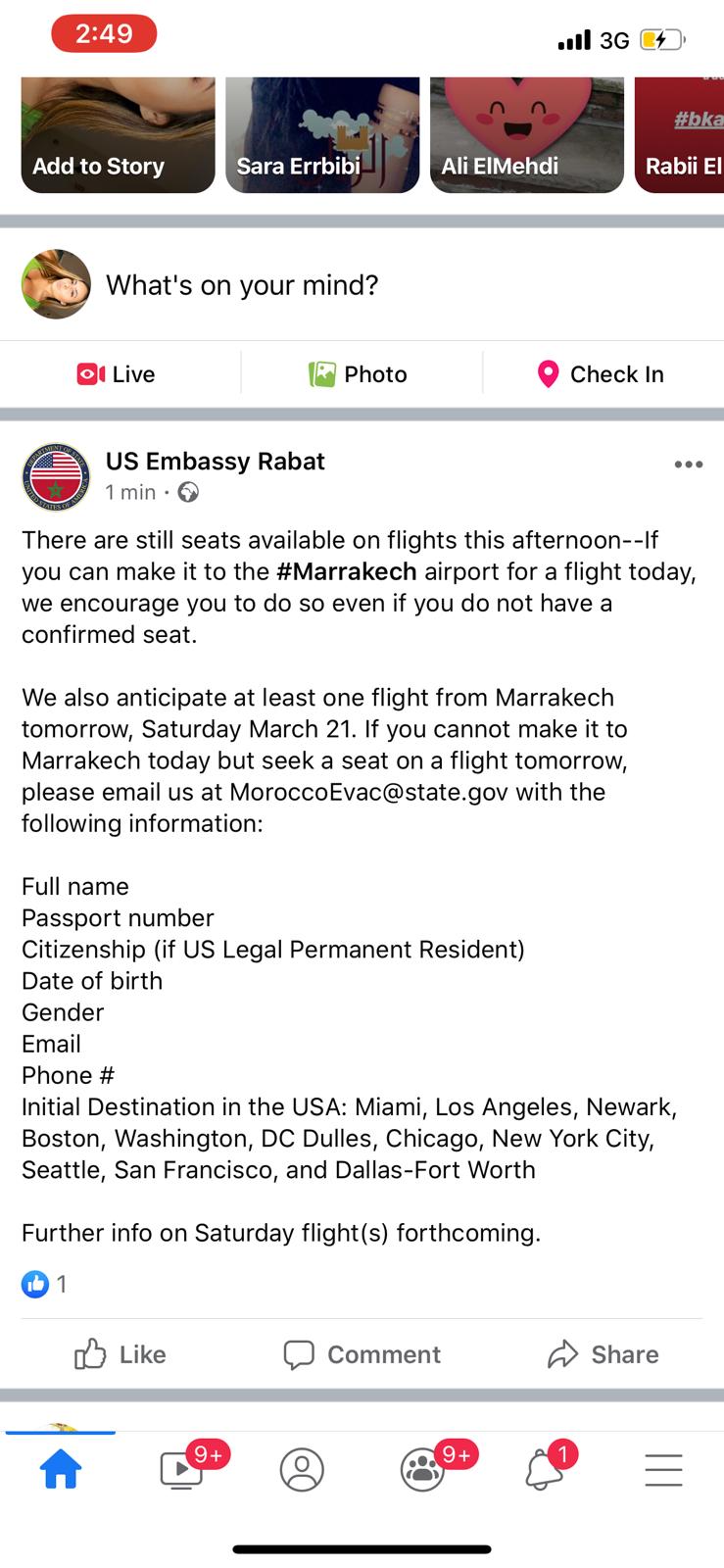 Repatriation flights from other countries had to fly one of 11 airports in our nation. Cities now with some of the highest outbreaks of Coronavirus. Coincidence??? US Embassy Rabat and screenshot from my wife via the Facebook group