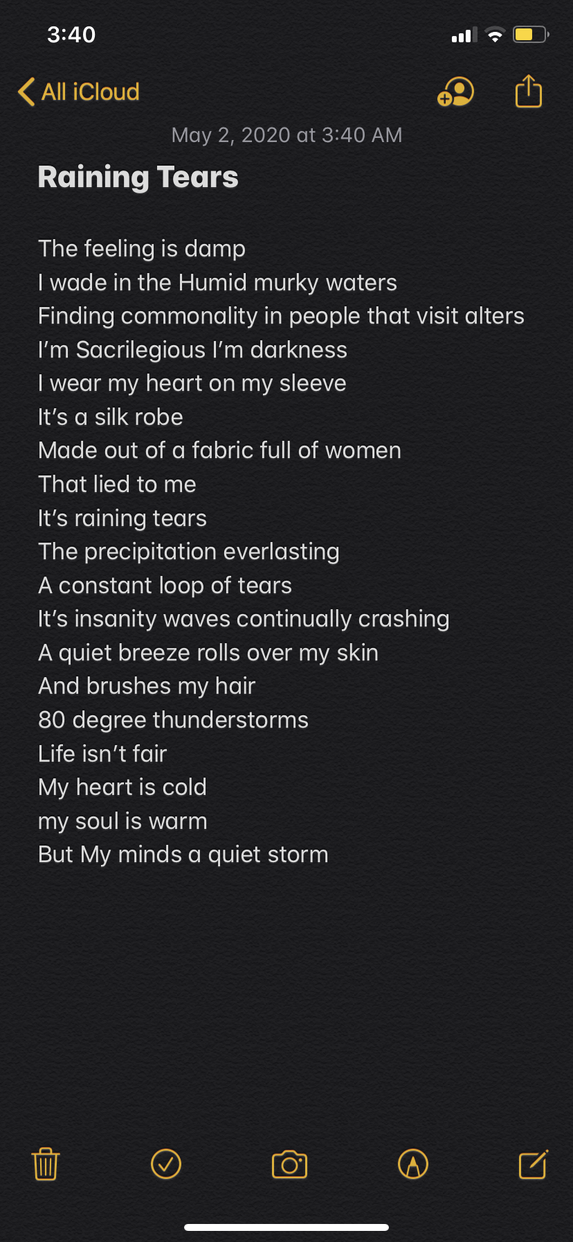 Screenshot of poem written in iPhone notes app
