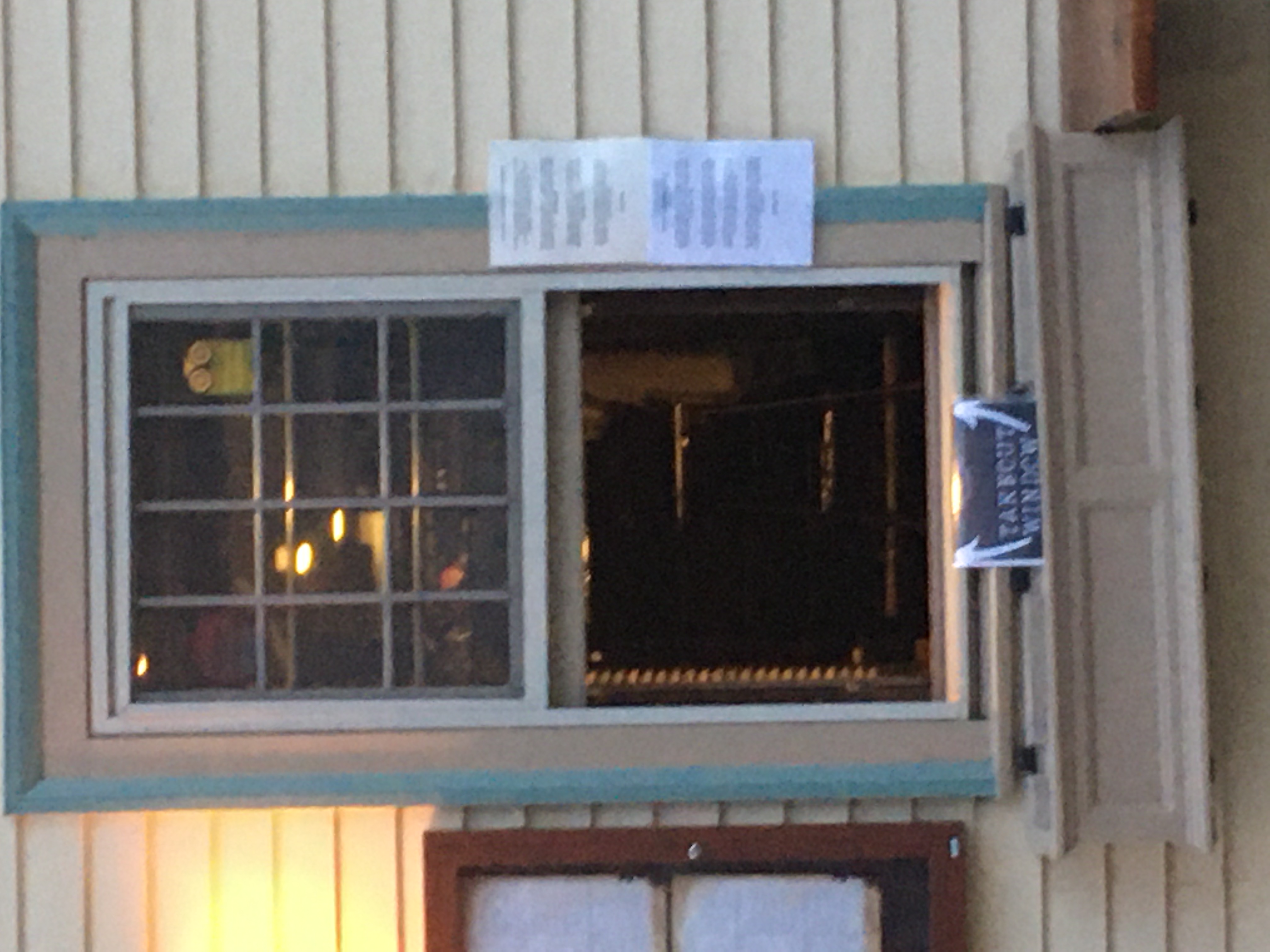 Photograph of flower box repurposed for contactless take-out during pandemic. Warren Tavern, Charlestown, MA.