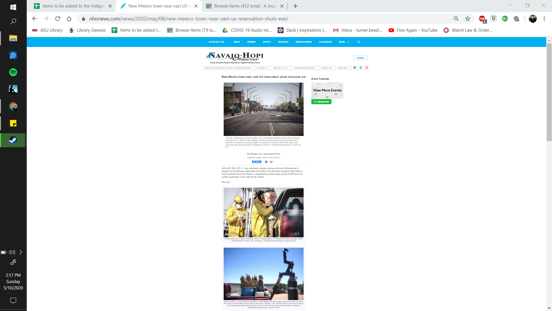 “The outbreak on the huge Navajo reservation, the nation's largest with 175,000 people, have made people in Gallup nervous. Many see hints of the long-running racism that has divided people in the town for centuries. ‘They targeted the people around here. They're going to be coming to Gallup to shop, so they put a stop to that,’ said Johnnie Henry, who said two of his relatives on the Navajo Nation were apparently infected with COVID-19 while working at a hospital in Gallup. ‘We kind of look at each other and say, are we the ones bringing it? No, it's all over. There's a lot of people who want to go back into Gallup, but they're afraid that they're going to call us names ... say that we are the carriers.’”