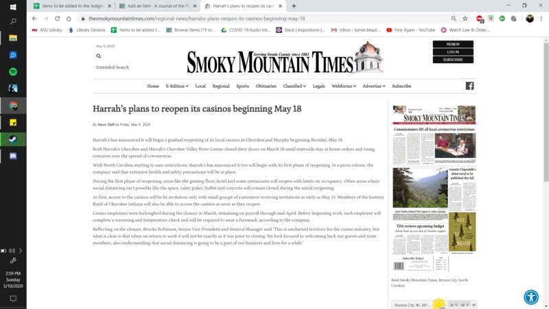Eastern Band of Cherokee Tribe Plans to Reopen Casino on May 18