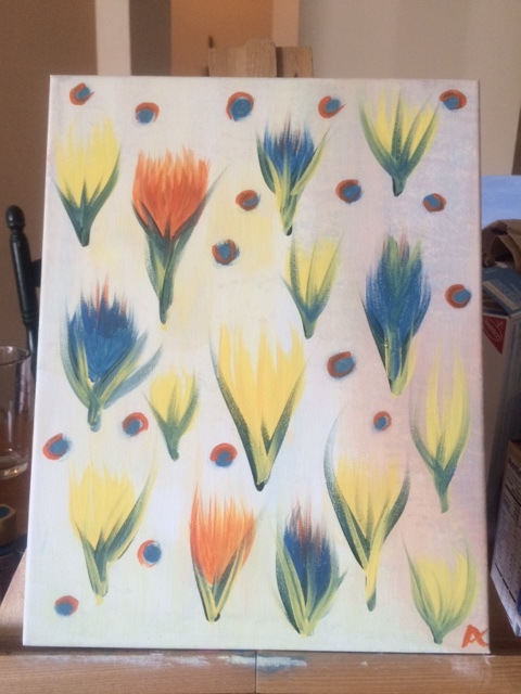While taking walks we get to enjoy the beauty of Spring in Kansas. On mother's day i wanted to paint the beauty of tulips, and somehow the coronavirus become part of the beauty of nature... present, silent, intrusive.... and still part of our lives... in spite of our efforts to avoid it.