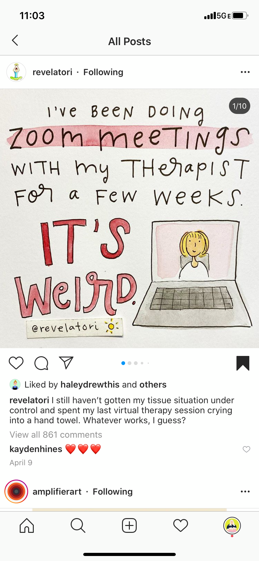 The illustrator depicts the 'weirdness' and discomforts of doing therapy sessions over the screen using Zoom. The pandemic has forced everything online and mental health is at its most volatile for many people around the world.