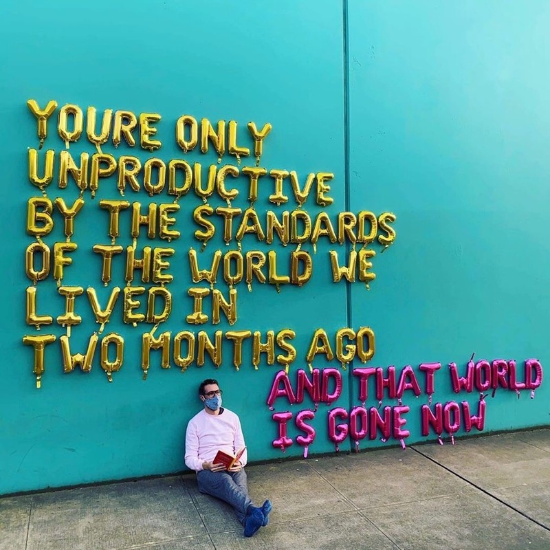 This image shows a ballon art message of support from artist Michael James Schneider.