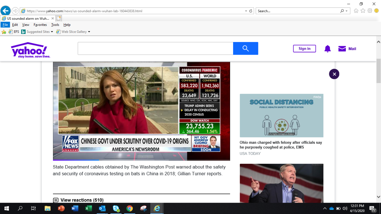 2020 April 15 - News headline about the Covid19 outbreak