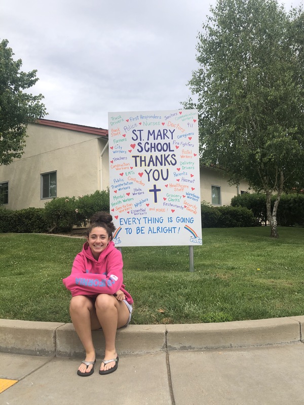 My younger sister, Josette Courey--who is a 2020 8th grade graduate at St. Mary Elementary--stands in front of a sign constructed by her fellow classmates and teachers. The sign displays support for public health officials and other frontline workers responding to the COVID-19 crisis. On our way home from shipping a package, we decided to drive by the school one last time to reminisce on her eight years as a mustang. This date marks a significant number of events for Josette. She not only missed her Confirmation and her graduation but she will also be sharing a very interesting birthday celebration as well. Personally, visiting the school again reminded me of my times as a student there and how fast eight years passes by. In a way, it reminded me to always make the most of any situation and to spend time with those most close to you. The pandemic may have tore us apart but it also brought us back together.