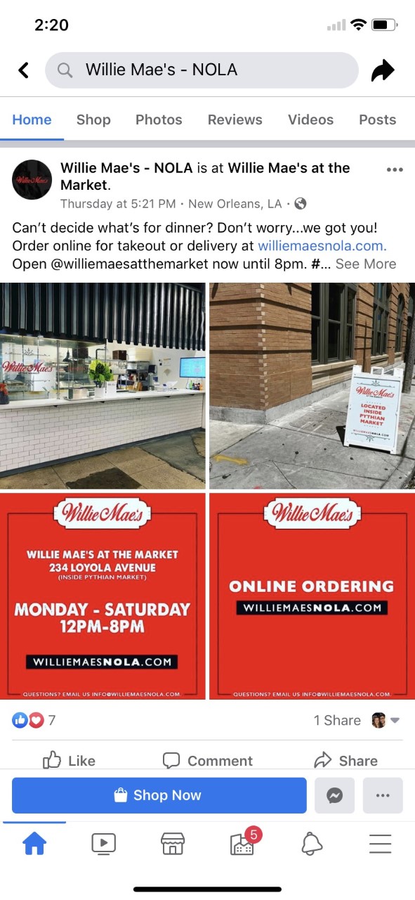 Willie Mae's adds a funny post to the restaurant's Facebook page, providing solutions to patrons for the questions, what's for dinner? The restaurant offers online and to-go orders.