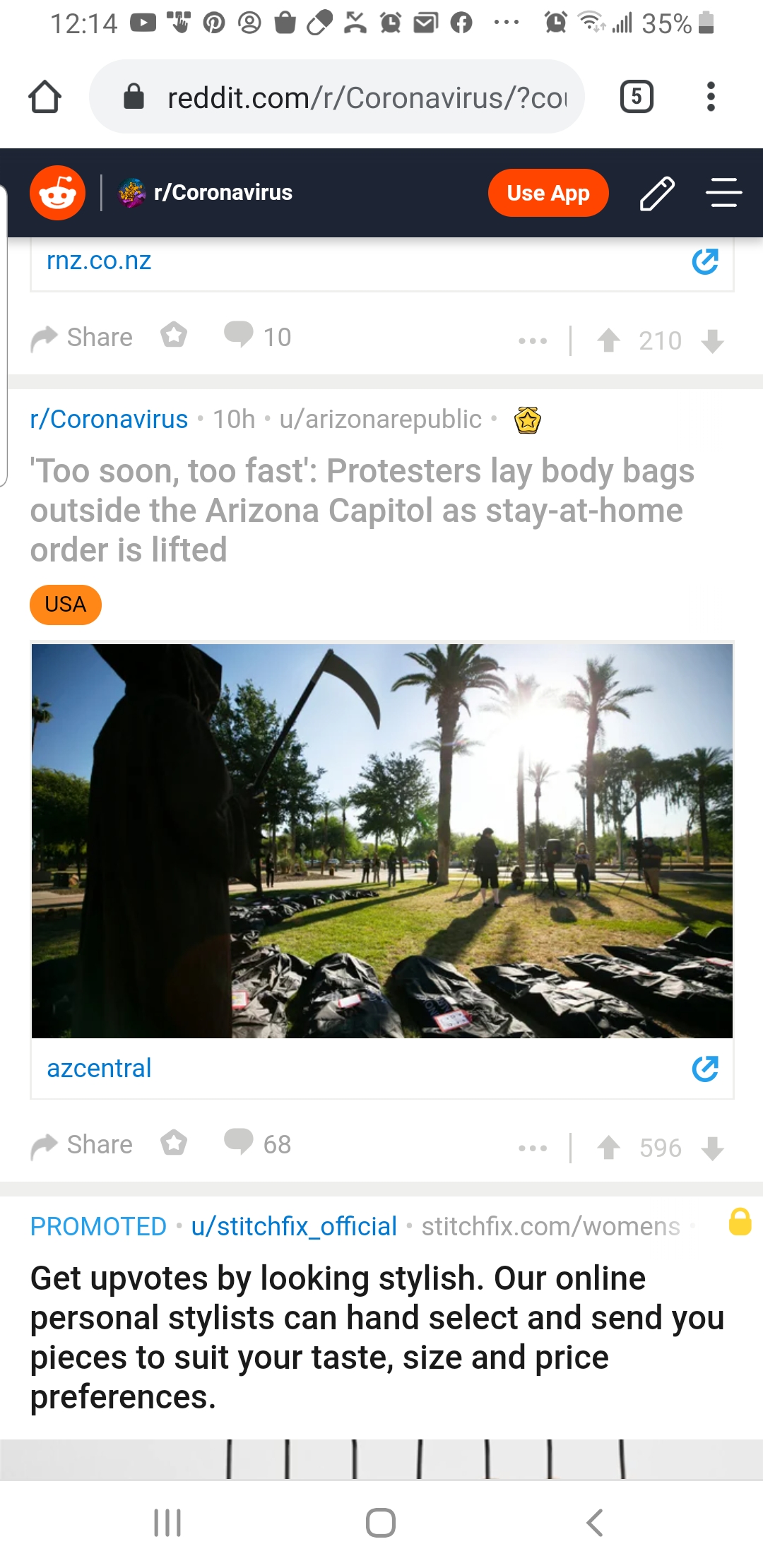An article posted to the site Reddit.com about a protest against the opening of a state in the US; it comes after several protests have been made against lockdown orders.