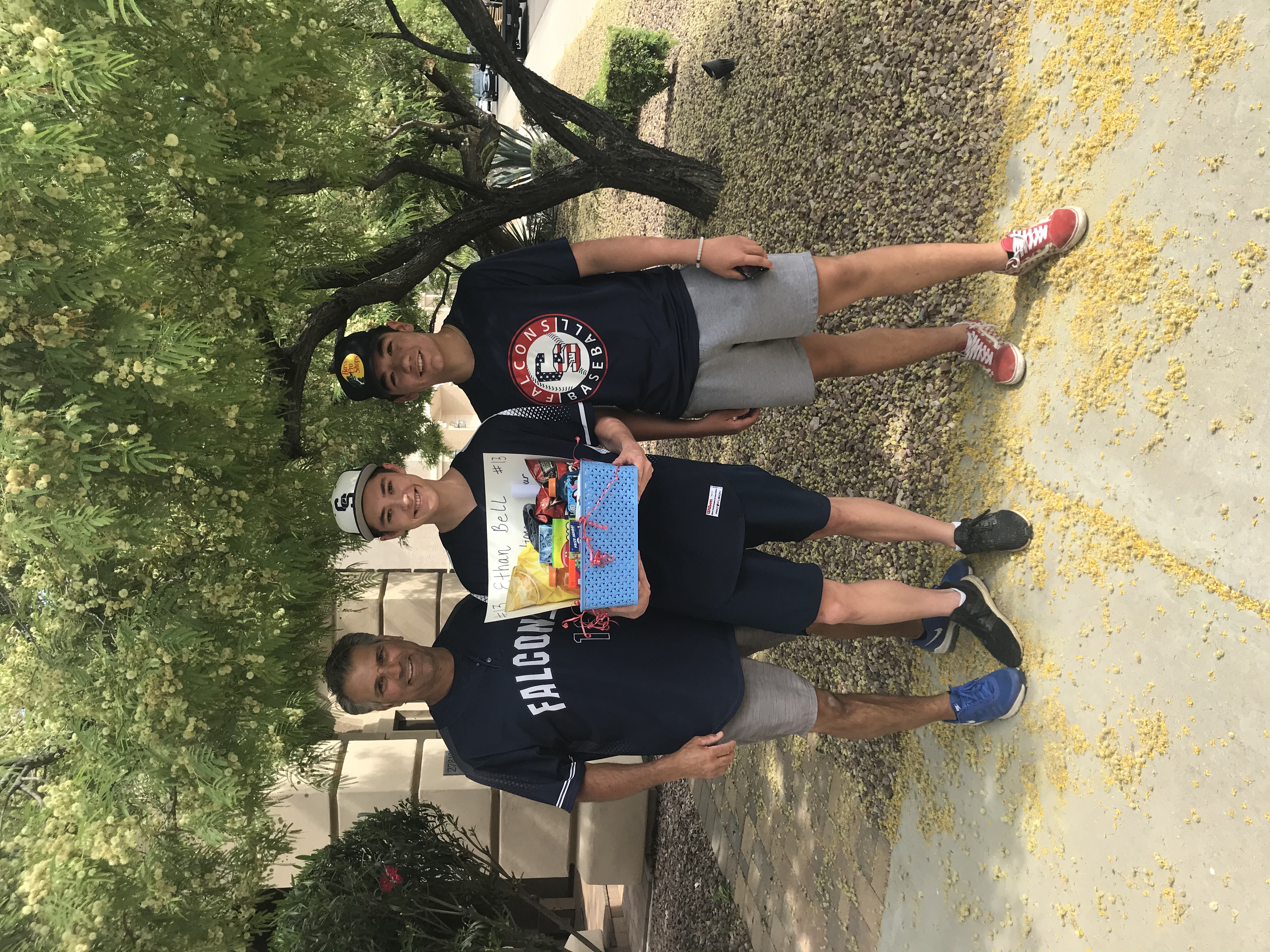 High School Senior, High School Coach and Freshman showing appreciation for High School Senior for their contribution to the school and baseball program. The season a was cut short due to Pandamic. ##cshsecon