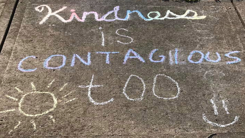 Kids around the country are using chalk to spread positive messages on the sidewalk. This image taken in the Jamaica Plain Neighborhood of Boston is just one example. The link below is to a video that shows more images like this from around the city. https://www.nbcboston.com/news/coronavirus/kids-spread-cheer-on-sidewalks-during-coronavirus-pandemic/2096368/