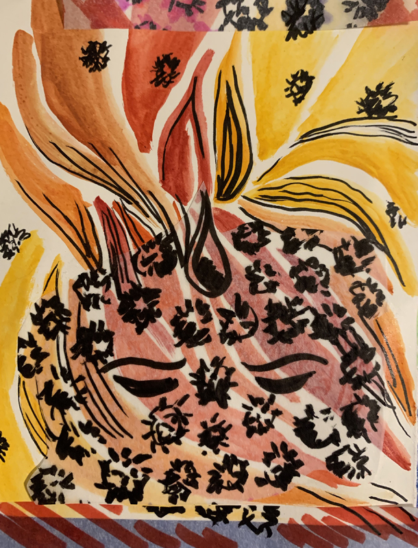 This image represents the virus taking over - the pieces of virus cell combine to create the face of the individual. Meanwhile, the third eye (protector) looks on, as the other 2 eyes stay closed and "in quarantine'.
