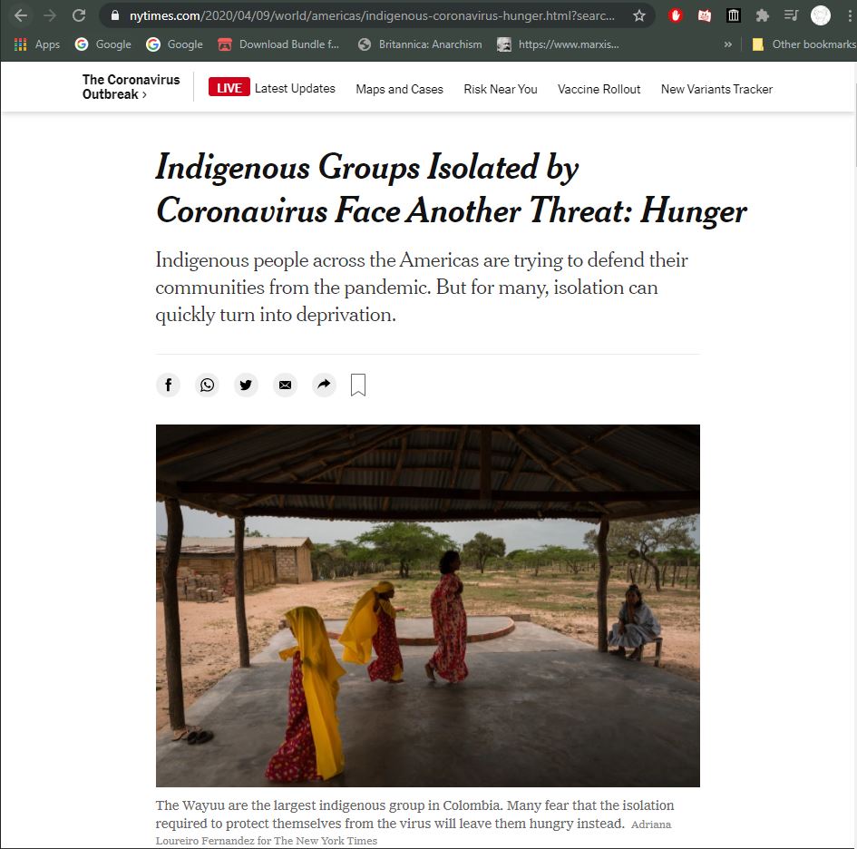 "Indigenous people across the Americas are trying to defend their communities from the pandemic. But for many, isolation can quickly turn into deprivation." #IndigenousStories