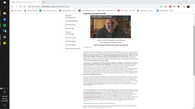 Chairman of the Grand Traverse Band of Ottawa and Chippewa Indians Provides Community Updates