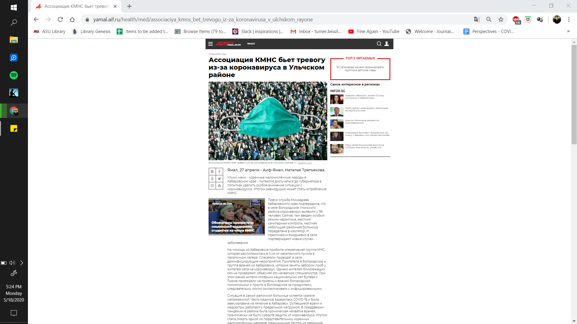 Indigenous Peoples' Association is sounding alarm over coronavirus in Ulchi district