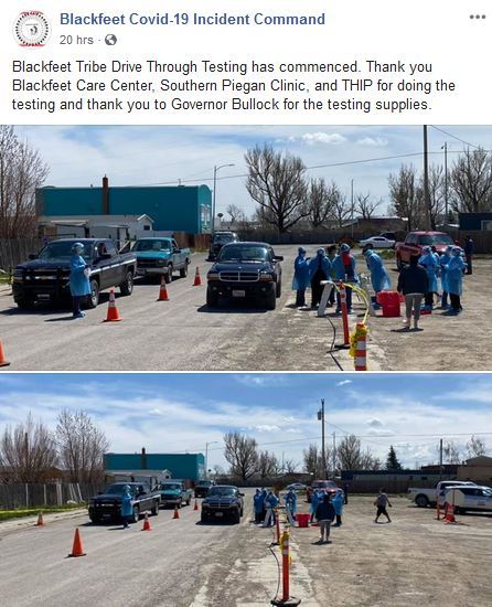 Blackfeet Covid-19 Incident Command Base offers tribal members some peace of mind with drive through testing using supplies offered by Montana Governor Bullock. #IndigenousStories