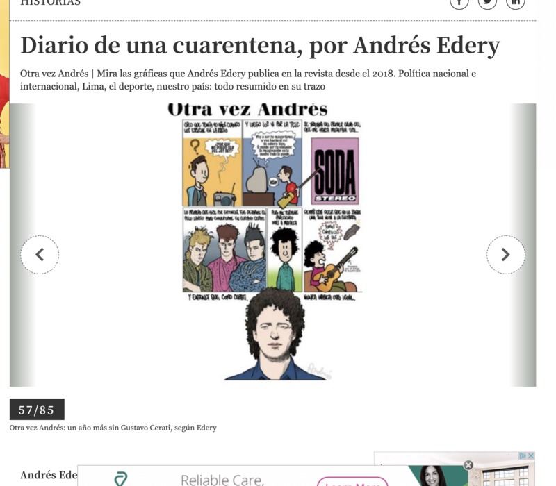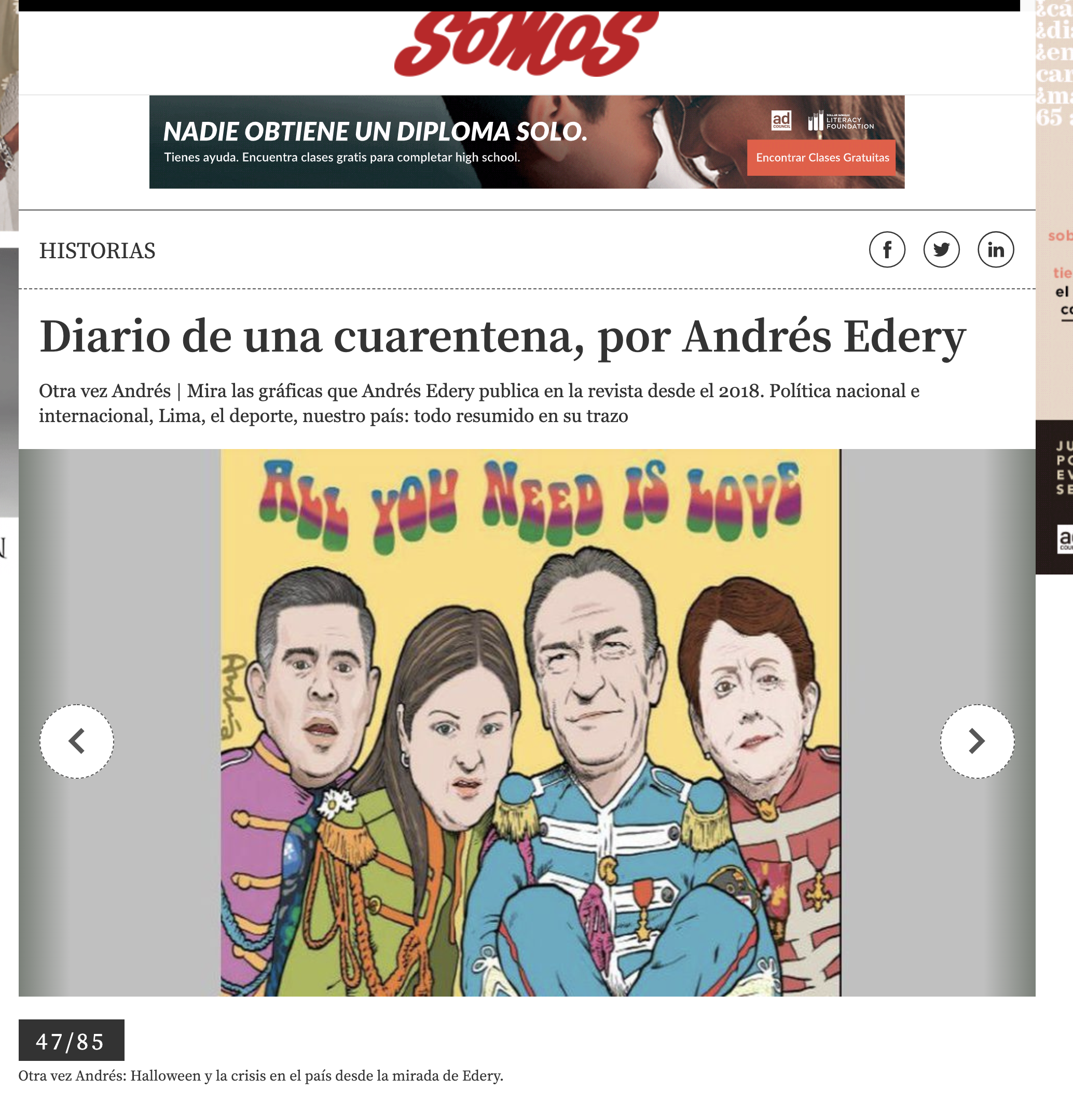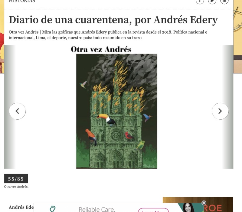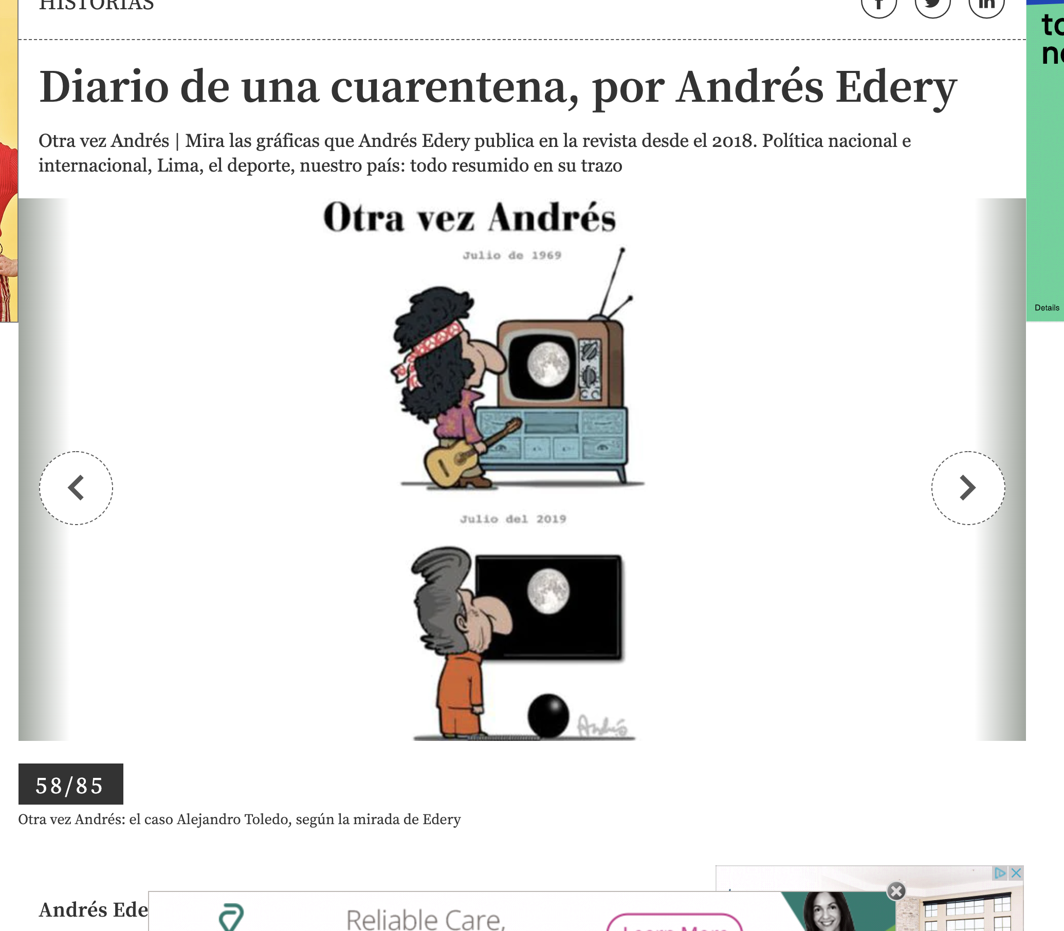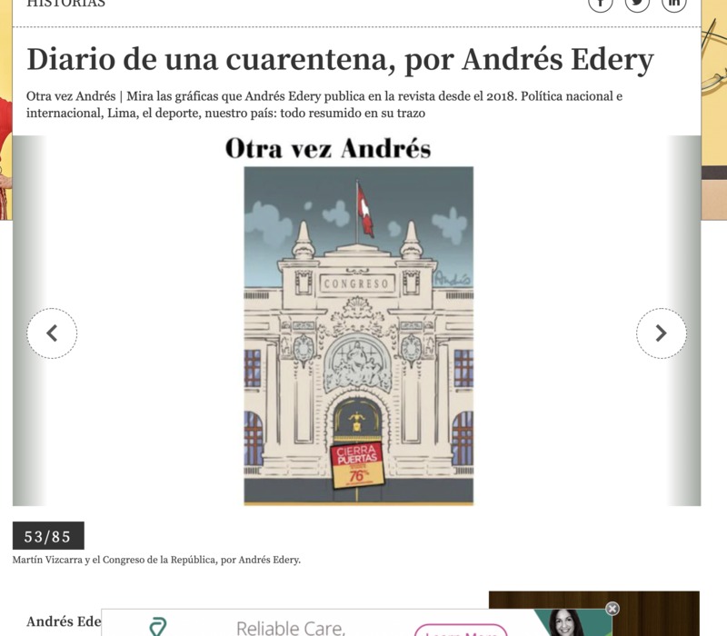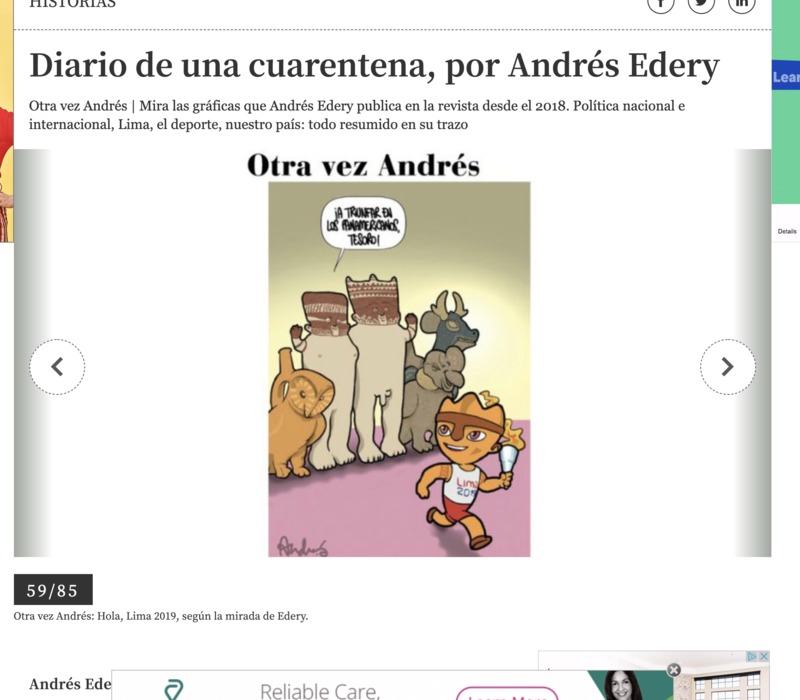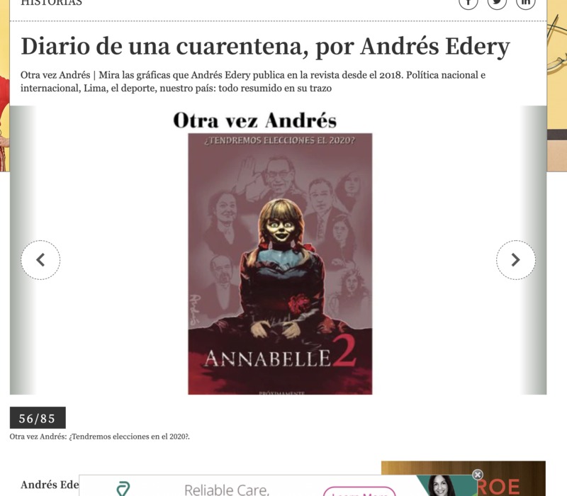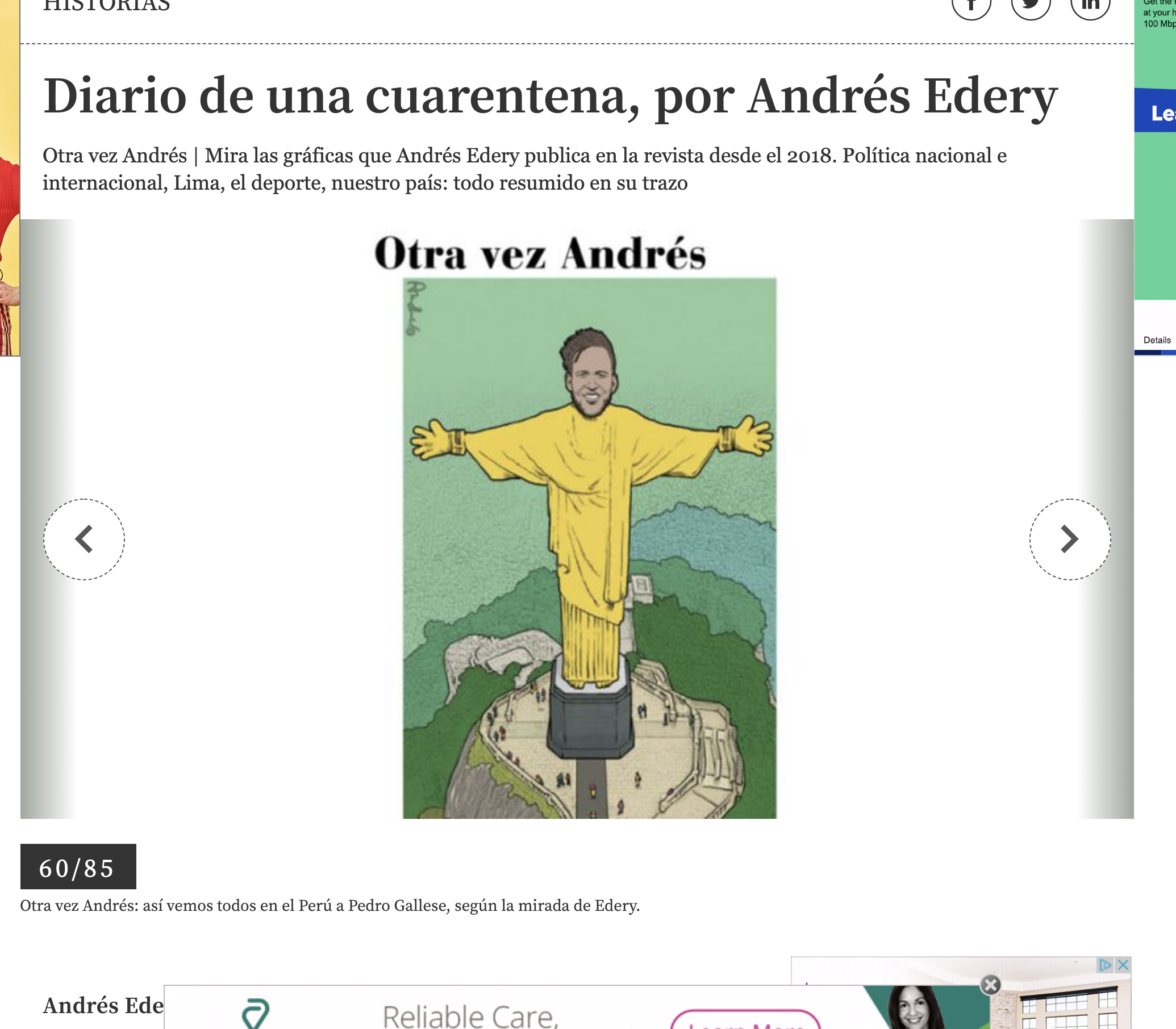 Items 41-60 in Diario de una cuarentena, por Andrés Edery, a series of political cartoons hosted by El Comercio Peru's website in the Historias section.