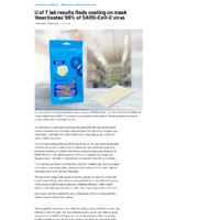 U of T lab results finds coating on mask 'deactivates' 99% of SARS-CoV-2 virus Linked Data Interactive Resource