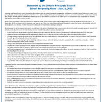 Statement by the Ontario Principals' Council School Reopening Plans Linked Data Interactive Resource