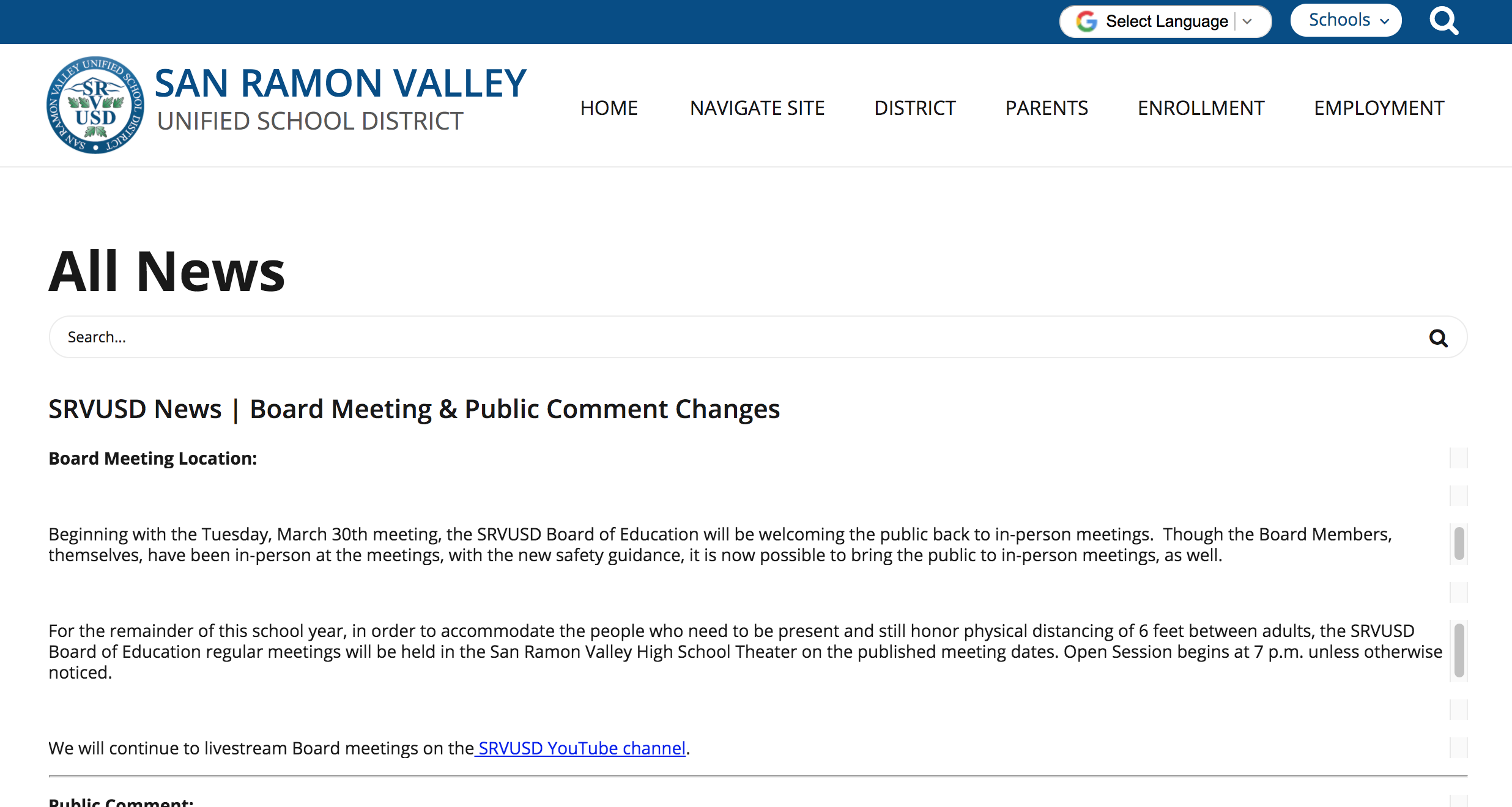 San Ramon Valley Unified School District Emails to Community Follow School Closure Announcement