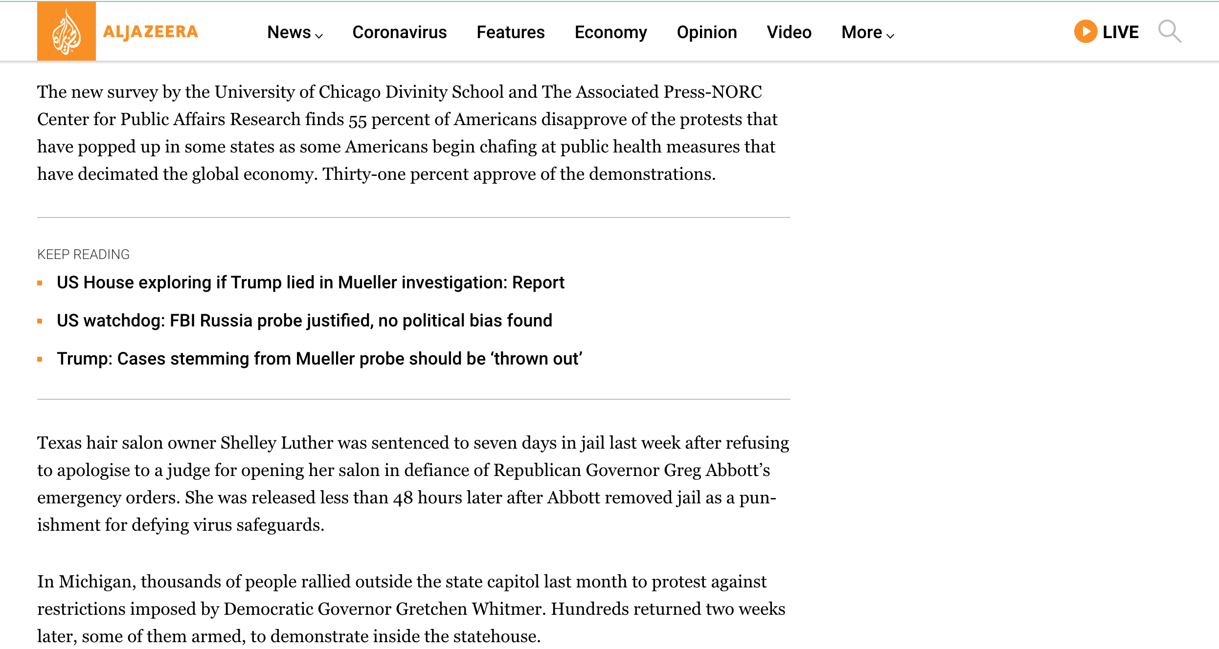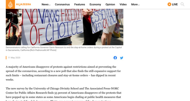 Majority in US disapprove of coronavirus protests